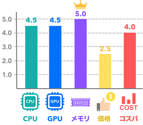 現在販売されているゲーミングPCであれば、だいたいこのラインは超えているものが購入できるかと思います。