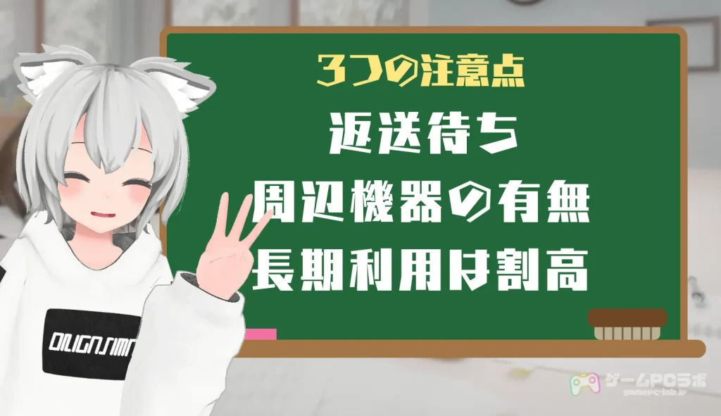 ここからは、レンタルゲーミングPCならではの注意点を紹介します。これらの要素が気になる方は、レンタルではなく、購入を検討したほうがいいかもしれません。